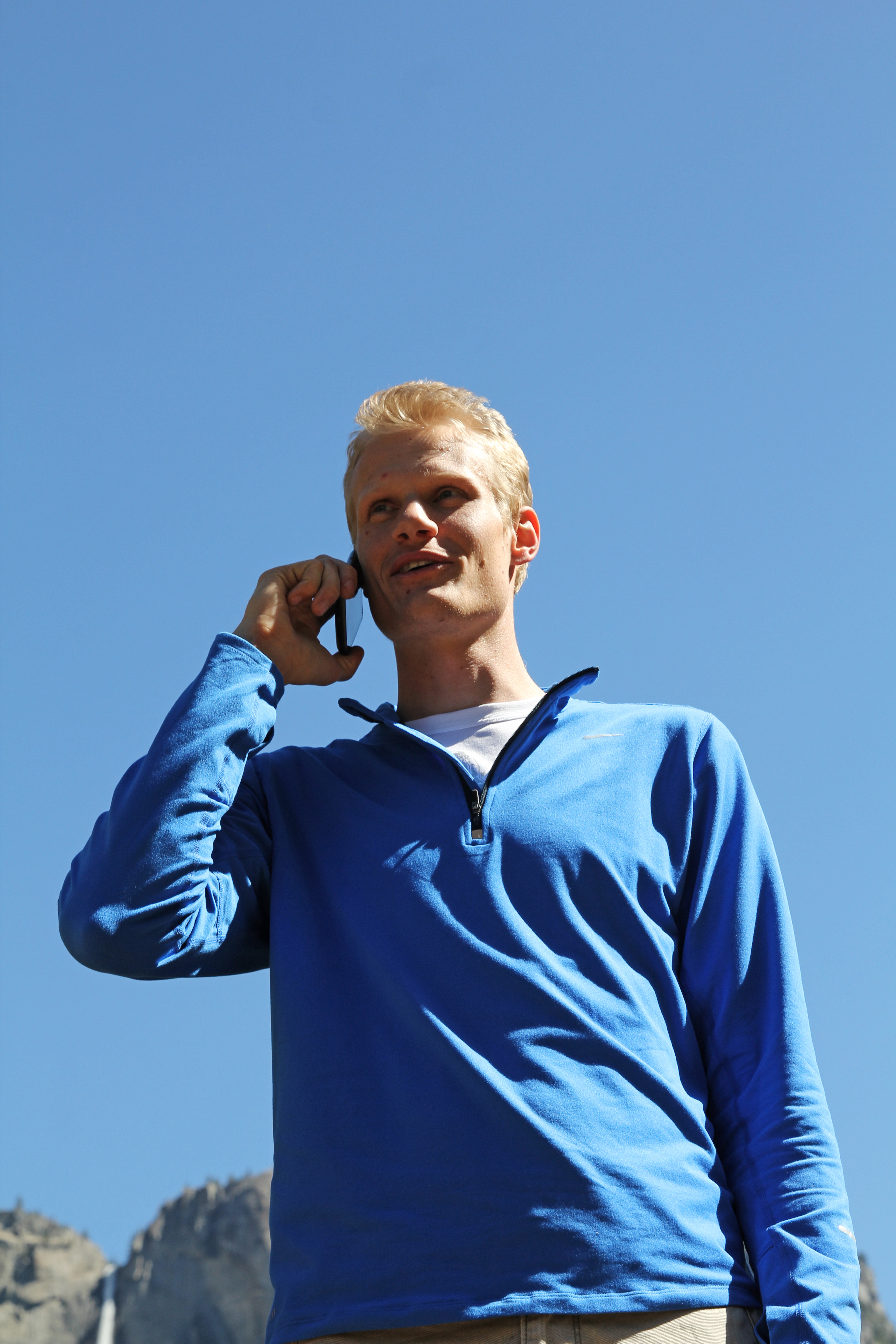 Sam blue outside communication technology cell phone cellular phone call calling handheld talking communicate blond person man Sam blue outside communication technology cell phone cellular phone call calling handheld talking communicate blond person man imagebase5_17.jpg Man on Phone