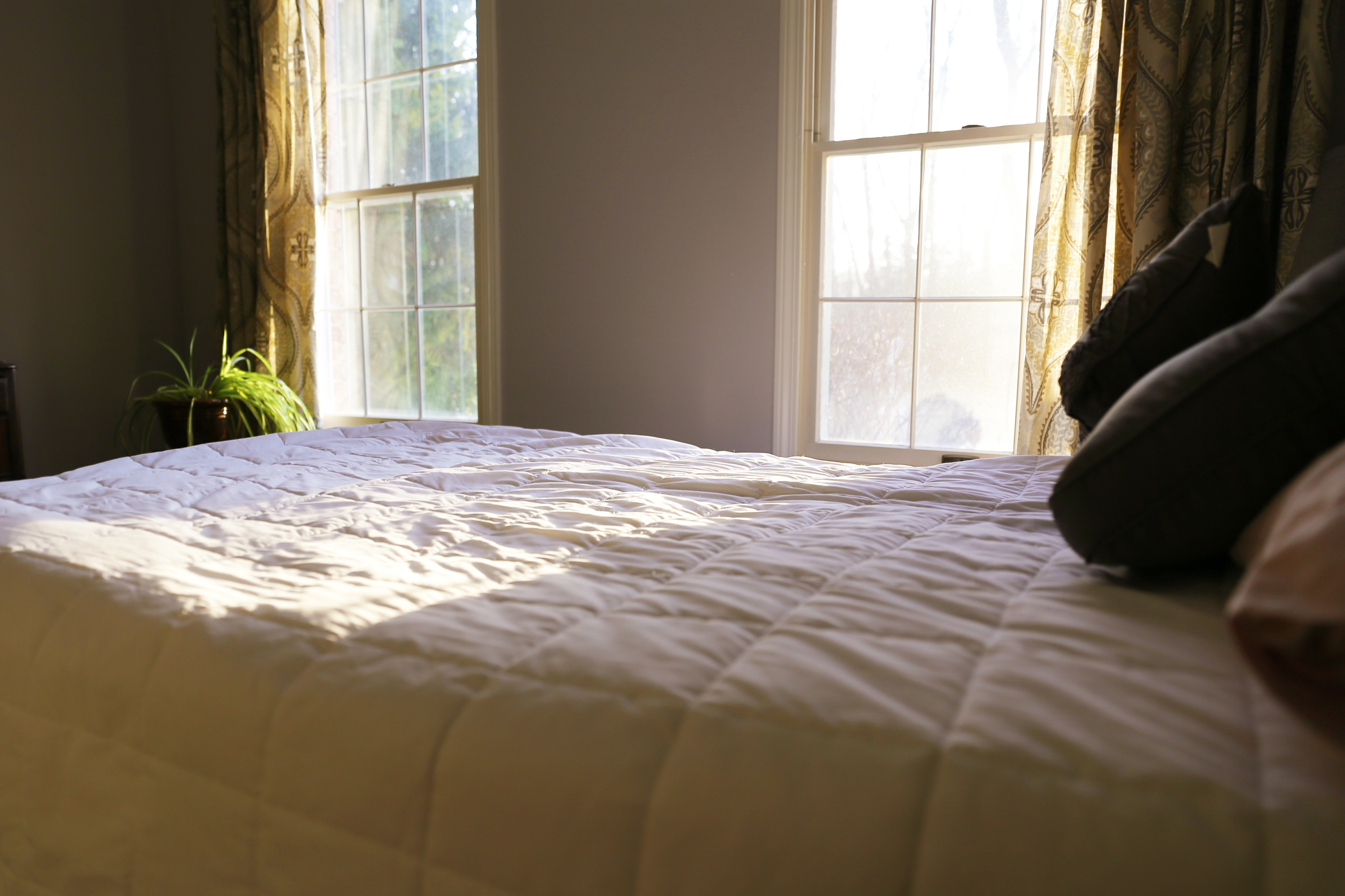queen duvet comforter white sun windows sleep welcoming evening rest comfort relax mattress bed warm