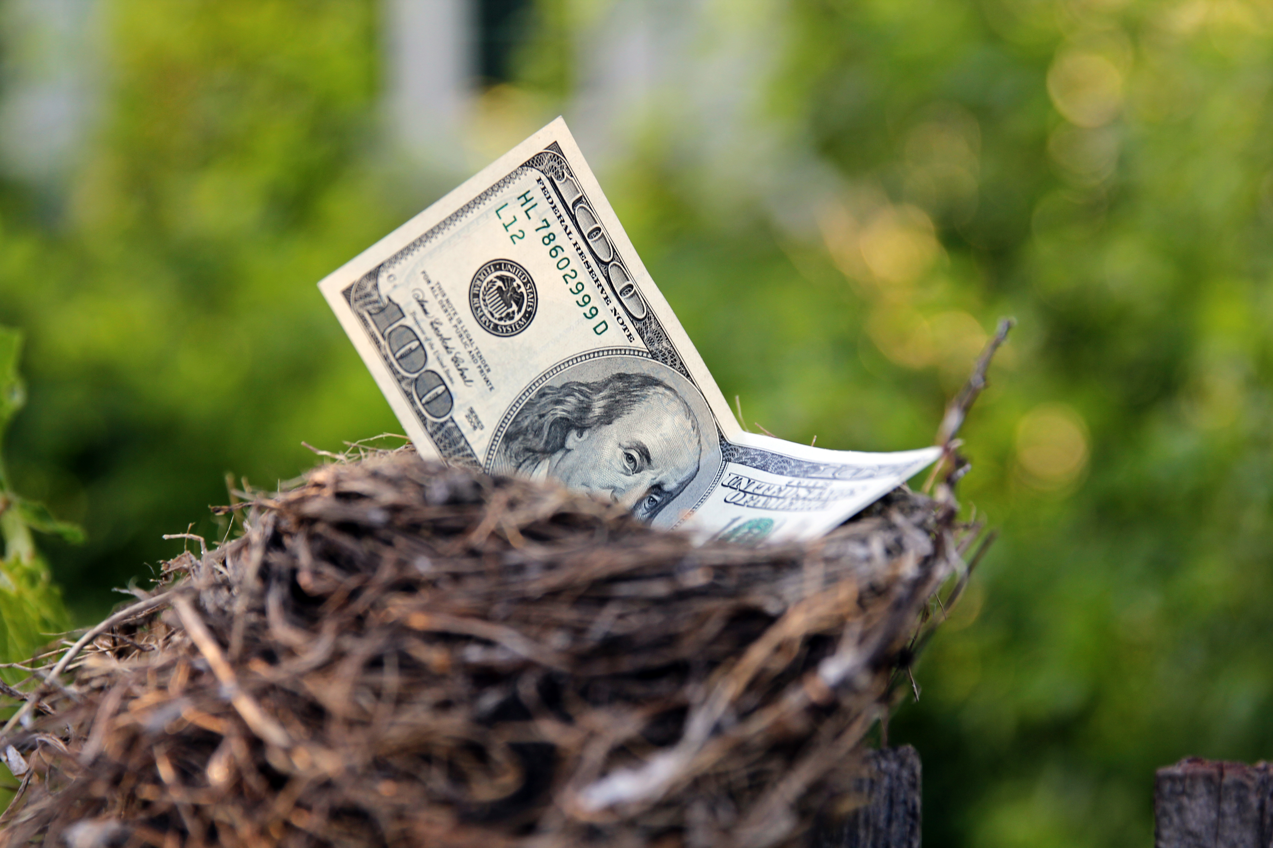 nestegg retirement saving financial wisdom nest egg nest-egg white egg chicken bird birds nest home nesting treasure fragile home homemaking green nature outside twigs branches holding Benjamin Franklin ben looking peer cash money hundred dollar dollars 100 nestegg retirement saving financial wisdom nest egg nest-egg white egg chicken bird birds nest home nesting treasure fragile home homemaking green nature outside twigs branches holding Benjamin Franklin ben looking peer cash money hundred dollar dollars 1