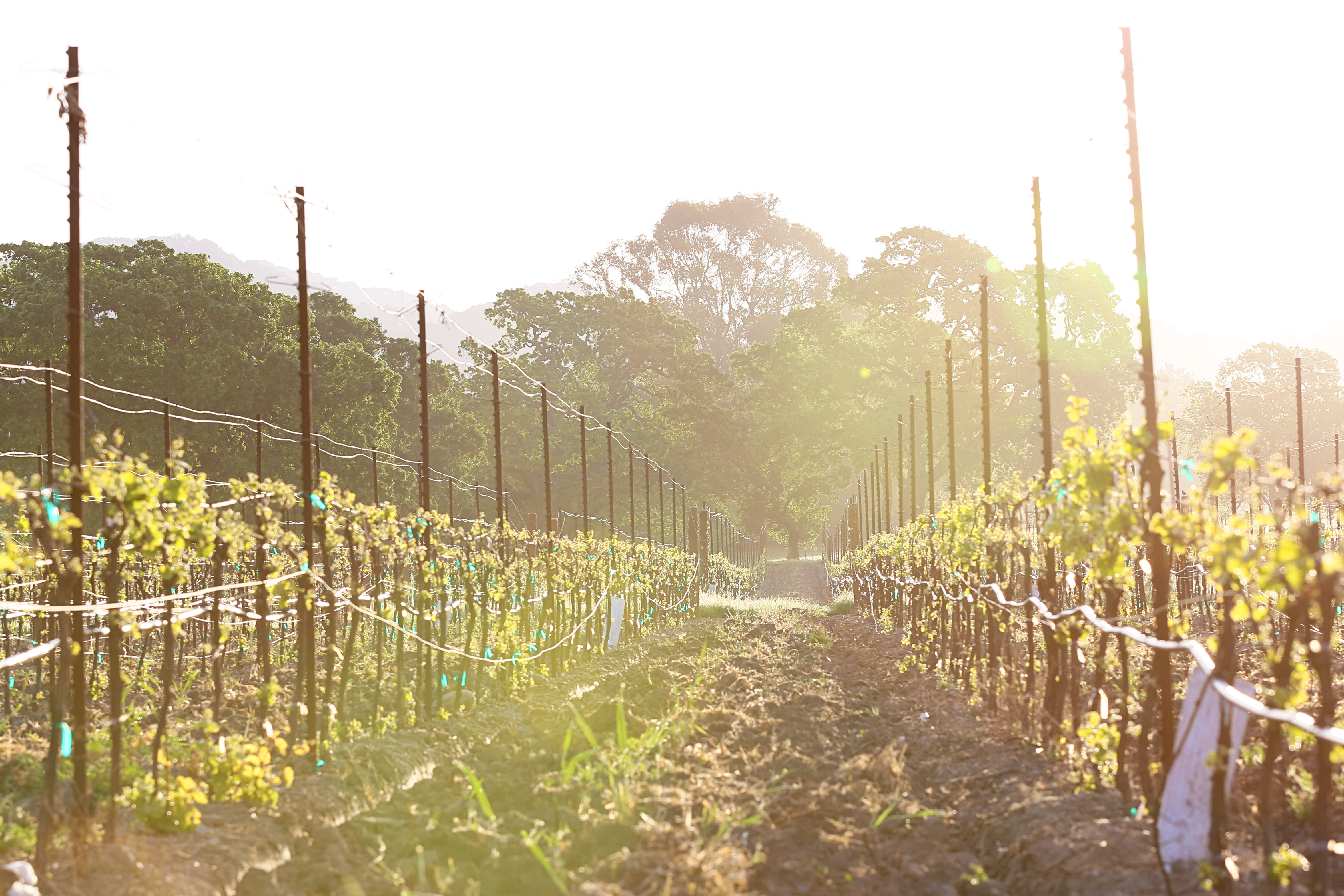 napa sonoma light morning dawn bright luminescent glow glowing rows vineyard antique retro