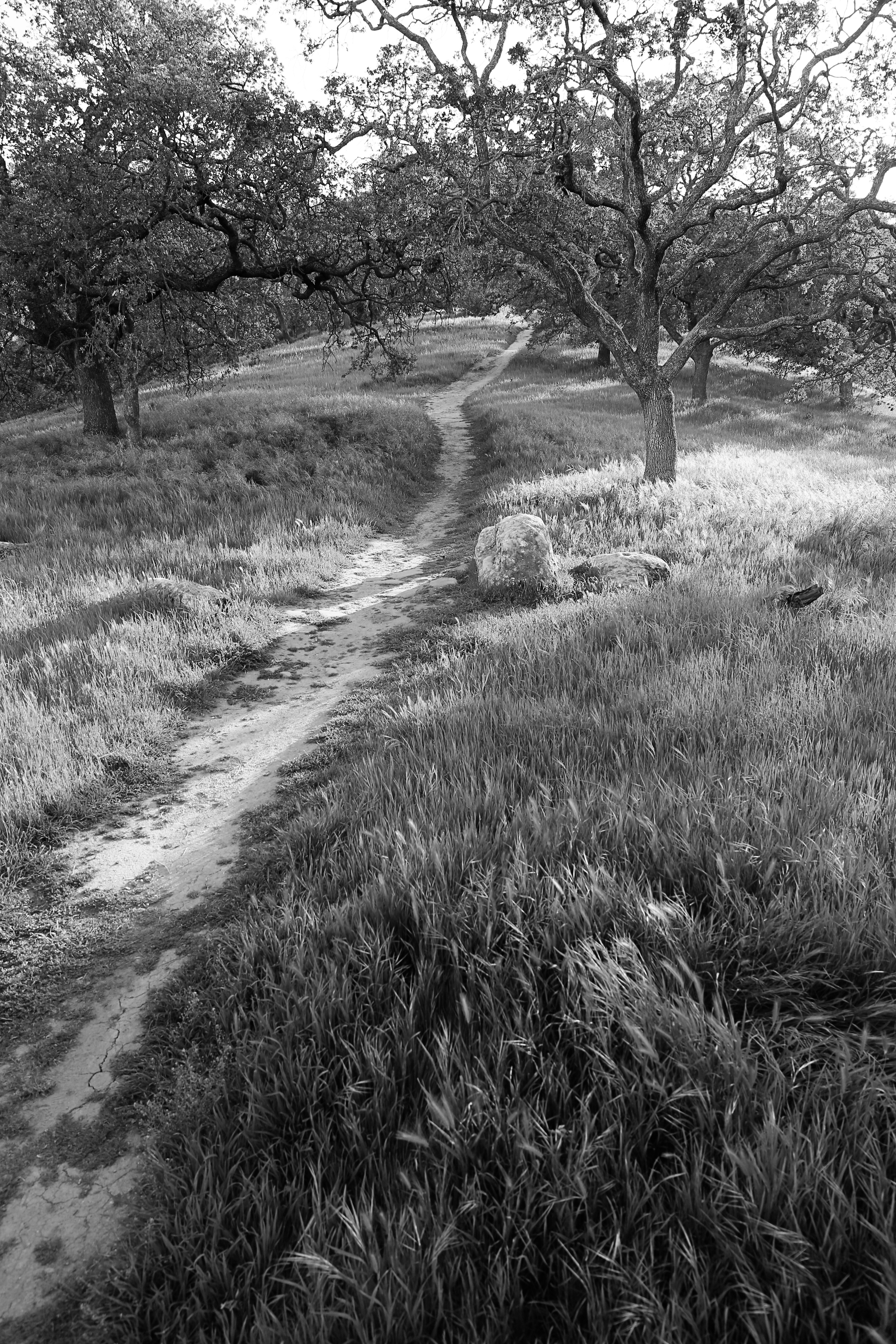 path calm background trail futur future direction guidance grass oak meadows calm sunlight black and white b/w
