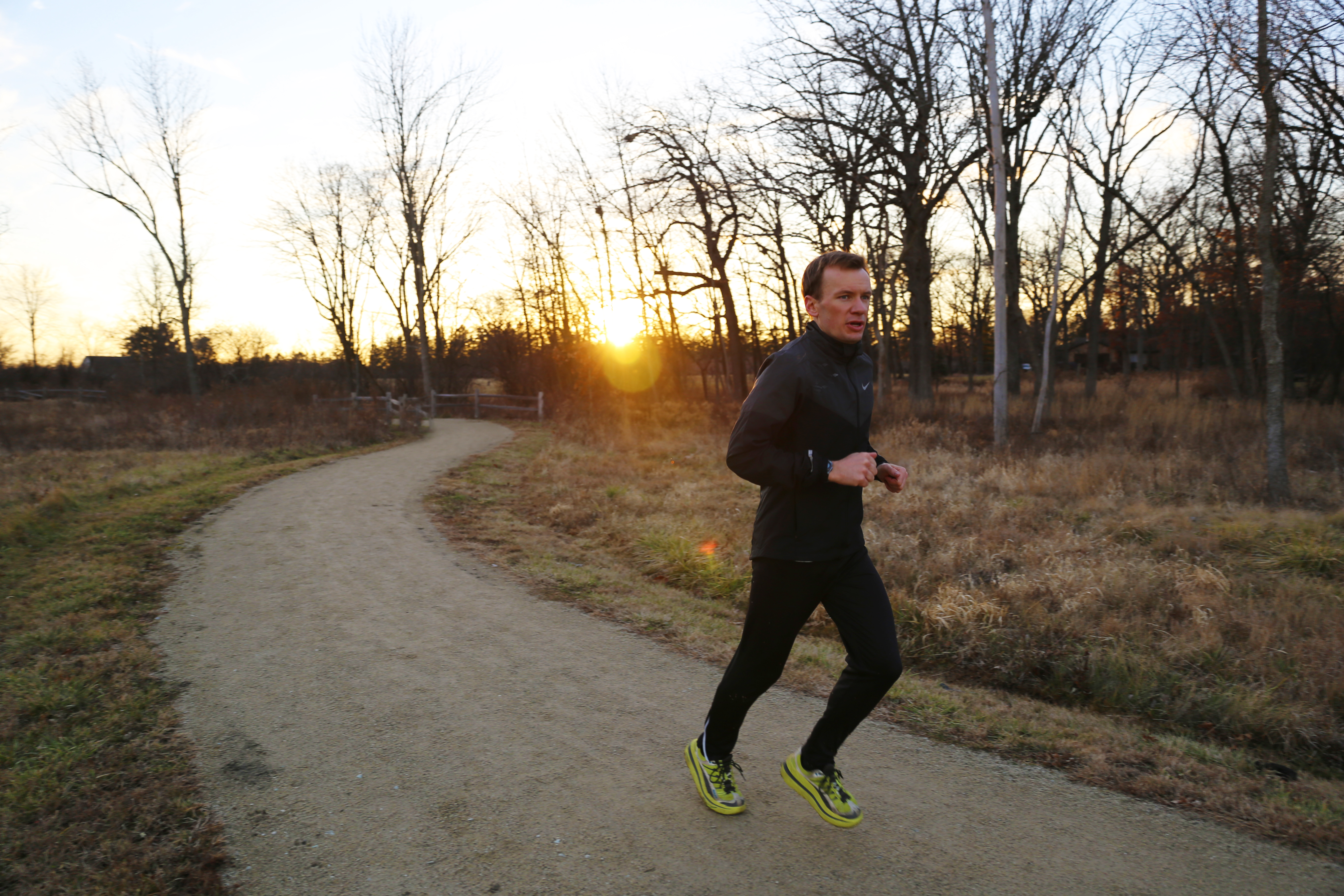 runner evening chicago fall autumn leaves cool running sunset determined strong steady ultra